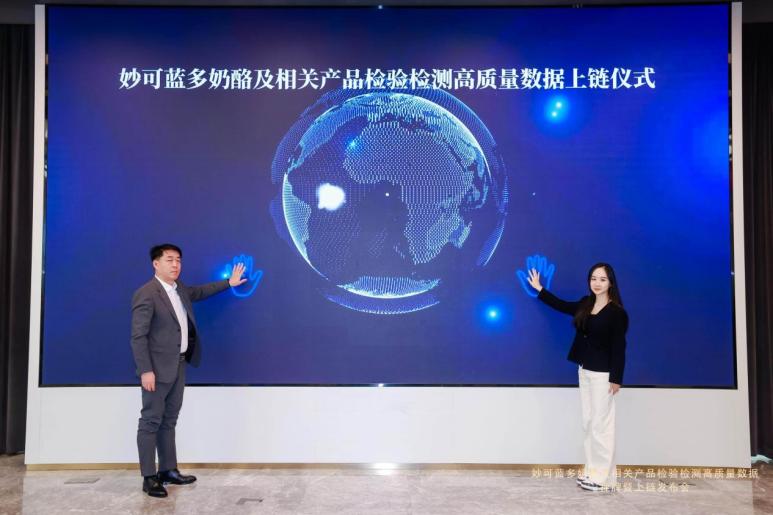 妙可蓝多行政总裁蒯玉龙、上海数据交易所副总经理刘小钰共同主持此次高质量数据上链仪式。