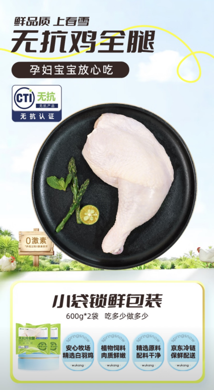 从无抗奶、无抗鱼到无抗鸡蛋、无抗烤肠……今年以来,春雪食品、大成食品、正大集团等多家头部禽肉企业纷纷布局“无抗”赛道,越来越多无抗产品被推向市场,折射出“无抗消费”的巨大潜力。作为京东生鲜与春雪食品共同打造的独家品牌,“上鲜”自推出无抗鸡肉系列产品后,凭借严格品控和配料干净,迅速在市场中展露头角,销量持续攀升。