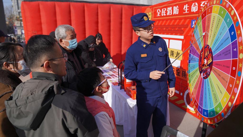 消防志愿者为市民讲解消防安全知识。