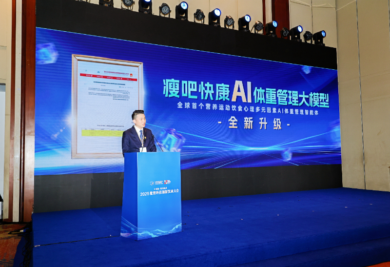 新华网海南博鳌12月5日电(王岩) 12月4日,以“AI赋能·智领新质”为主题的2025数智科技创新发展大会在海南博鳌召开。大会由新华网主办、信息社会50人论坛及人工智能场景化应用与智能系统测评工业和信息化部重点实验室协办,是2025企业家博鳌论坛系列活动的平行论坛。瘦吧科技联席总裁郭致诚在论坛上分享了AI大模型在体重管理与健康管理领域的创新应用与实践成果。