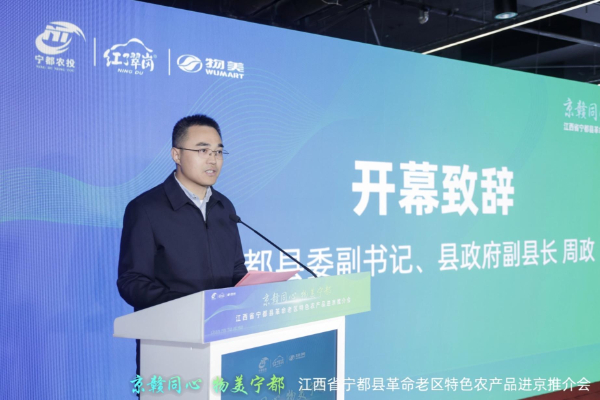 宁都位于江西东南部、赣州北部,县域面积4053平方公里,总人口83.5万,素有“客家祖地、文乡诗国、苏区摇篮、赣南粮仓”之美誉。宁都县委副书记、县政府副县长周政在会上表示,新时代的宁都立足“五黄一白”主导产业,推动农业全链条升级,培育了37家食品加工龙头企业,拥有绿色、有机及名特优新农产品认证107个,“宁都味道”已逐步走向全国。此次走进物美超市,既是希望让首都市民品尝到老区的优质农产品,更期待借助北京的平台,让宁都农业迈向更广阔的市场。