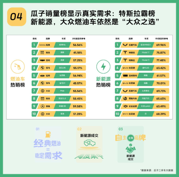 1、瓜子保值榜揭示新格局:新能源自主品牌强势崛起,燃油车主流合资品牌依旧稳健