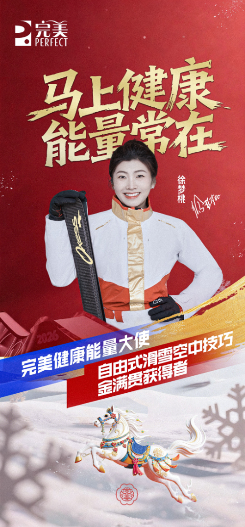 今日,完美(中国)有限公司(以下简称“完美公司”)正式官宣:自由式滑雪空中技巧金满贯获得者徐梦桃,在圆满履行“完美时光葆能量大使”使命后,正式升级成为“完美健康能量大使”,以“持久状态”为精神内核,共同开启一场面向全民的健康理念倡导,共赴马年新程。