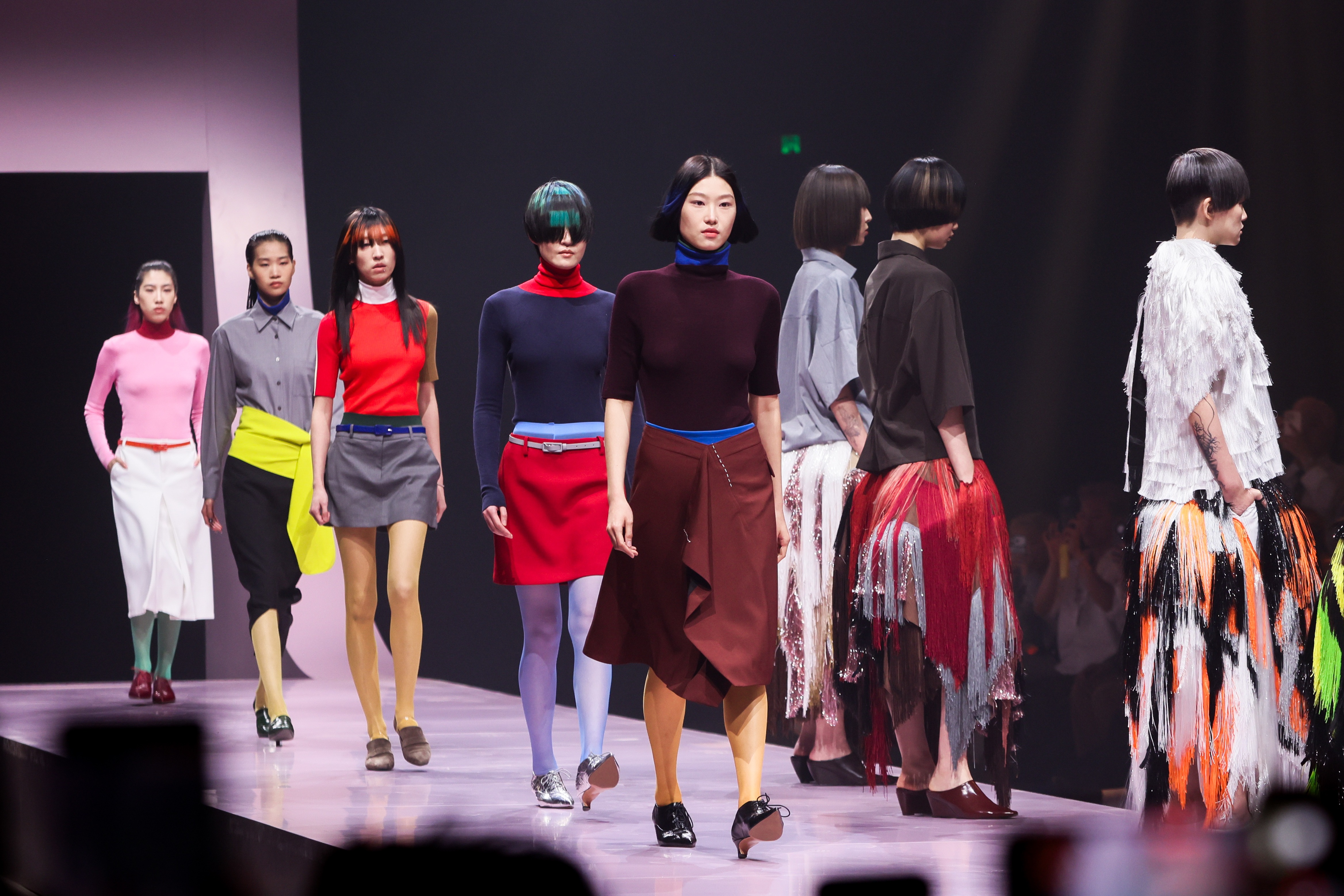 原色重塑趋势:这是一场空前大胆的色彩觉醒,也是一场传递“情绪放松”的视觉运动。时装脱离了繁琐的装饰,回归到原始面料的纯粹张力,绯红、中蓝与明黄在这一季被唤醒,却不再以单一姿态出现,而是在层叠、交错与几何重组中缓慢展开,如同一场节奏有序的视觉呼吸。发艺在冷静剪裁中暗藏流动,无层次长发如画布般承载色彩,短发则在柔软轮廓中取得平衡;原色在发丝间被虚化、被柔焦,在碰撞中留下呼吸感,使先锋不显锋利,平衡且耐人寻味。