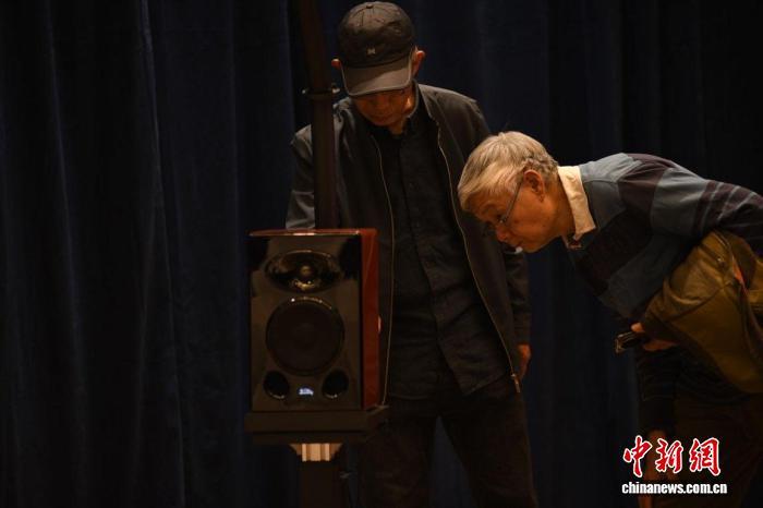 4月23日,发布会现场,嘉宾在参观音箱。 王雨佳 摄
