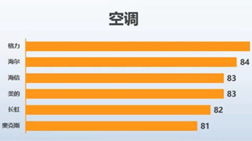 图为各质量因素对满意度的影响 来源:中国标准化研究院顾客满意度测评中心调查显示,在空调行业中,格力的顾客体验满意度得分最高,位于行业第一。