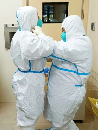 抵达上海后,湖南省第三批援沪医疗队迅速、全面接管了瑞金医院卢湾分院的ICU病房,苏盼也主动承担了感染控制、病人管理方面的任务。