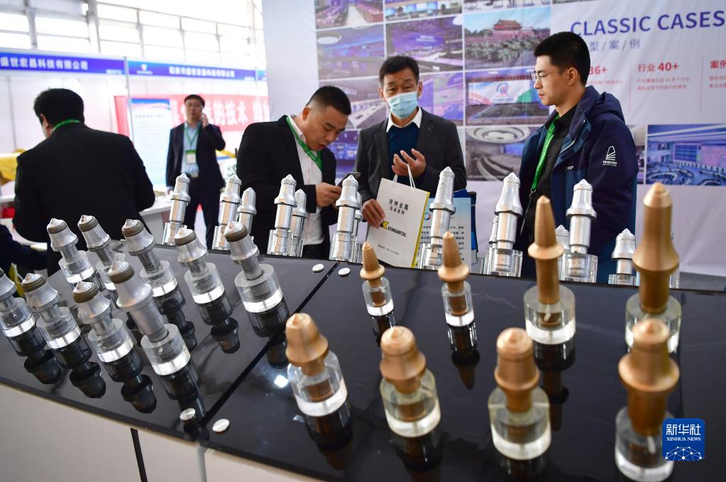 这是参展企业展出的采煤机截齿(10月13日摄)。 新华社记者 邵瑞 摄