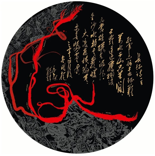 “红色情怀·初心之路”是以长征精神为主题的创作。长征精神是红色革命精神之一,是中国共产党在二万五千里长征中创造的革命精神,是中华民族百折不挠、自强不息的民族精神的最高表现。心存红色情怀和诚挚敬意,通过地图的语言和艺术的手法,重温那段惊天地泣鬼神的英雄史话,在黑色的社会背景中,以大手笔挥写苍劲有力的长征之路,红色巨龙跃然腾空,装点以长征经典场景和毛泽东诗词《七律·长征》,寓意在新时代的长征路上,不忘初心,砥砺前行。
