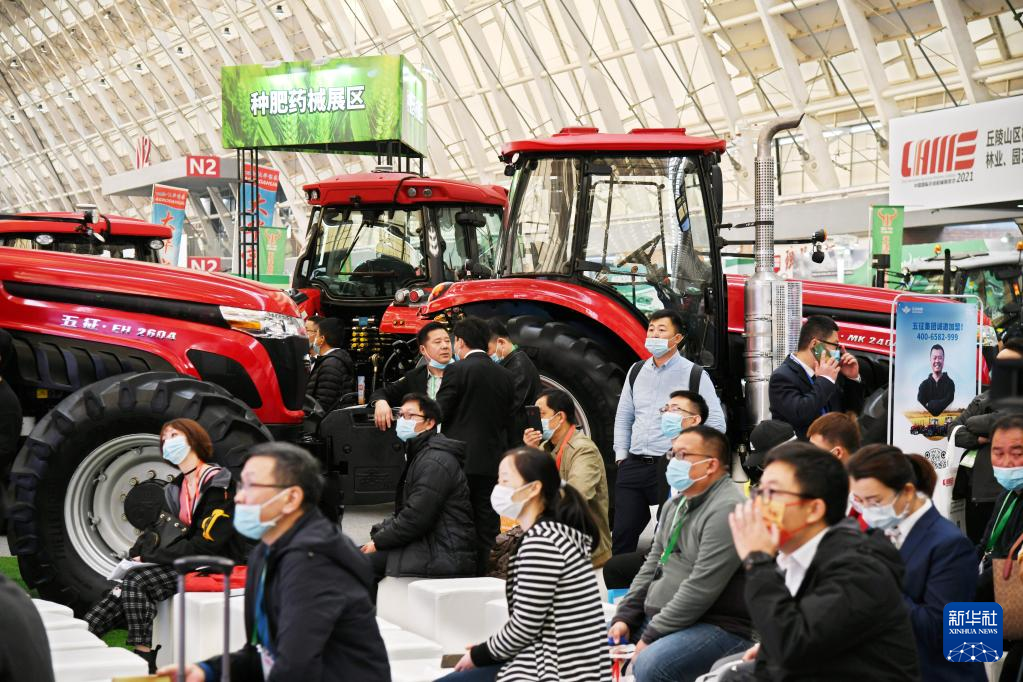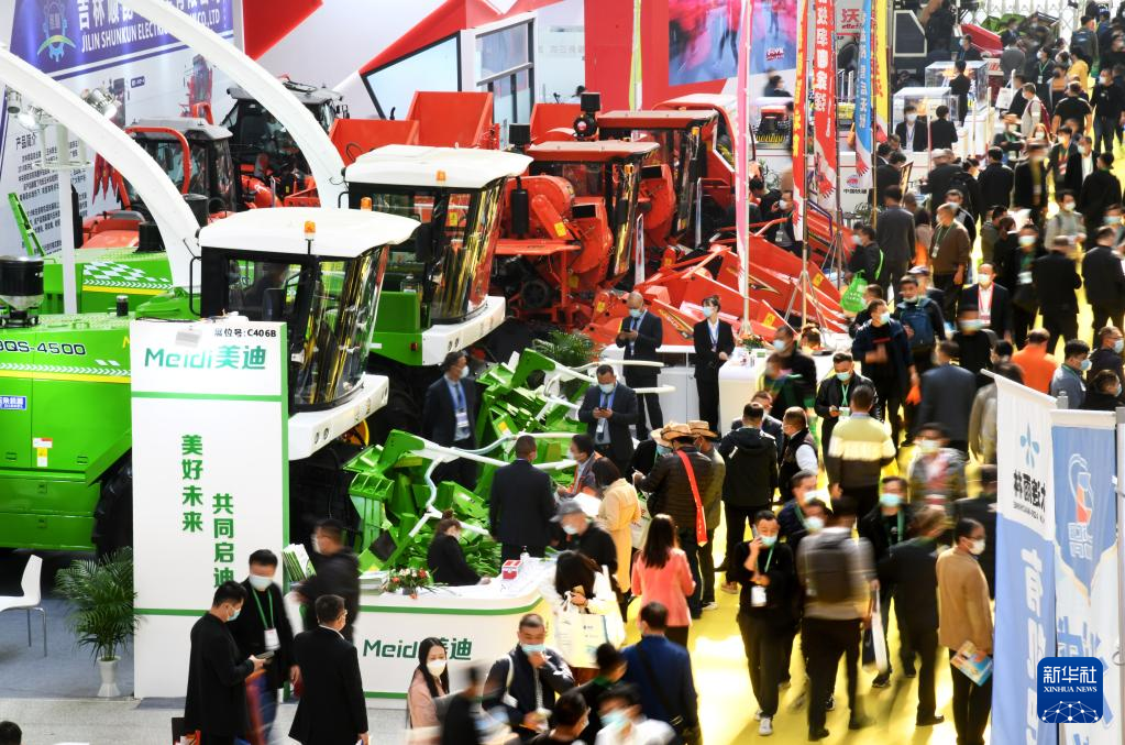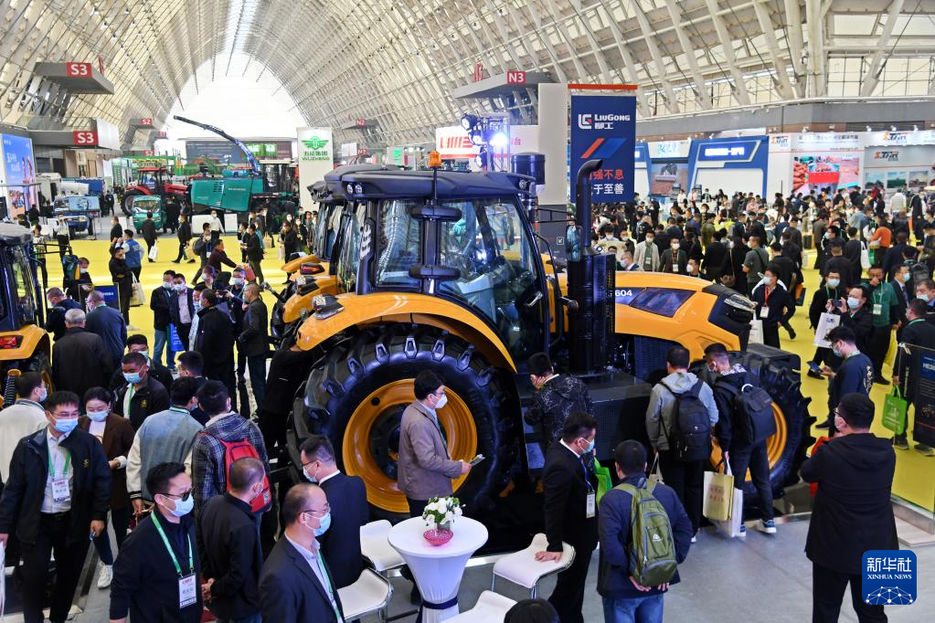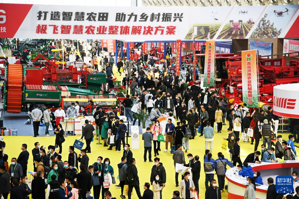 这是10月26日拍摄的展会现场。 当日,以“乡村振兴·智慧农业”为主题的2021中国国际农业机械展览会在青岛举行。本届展会面积逾22万平方米,近2000家参展商带来了当下最新的农业机械及相关设备。 新华社记者 李紫恒 摄