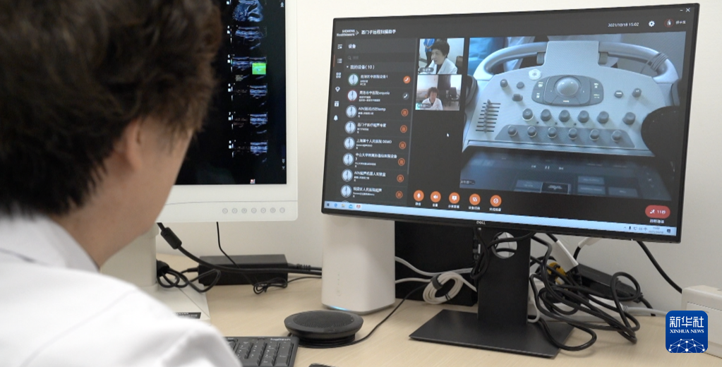 “探头向上方偏转一下”“这里可以看到彩色血流”……上海中医药大学附属曙光医院超声中心主任郭佳正在连线陕西省商洛市中医医院的医生赵冬丽,郭佳指导赵冬丽手里的超声探头指到哪里,高清超声图像就实时出现在郭佳面前的屏幕上,郭佳还可以自己对图像进行参数调整,跨越千里,却几乎没有时延。