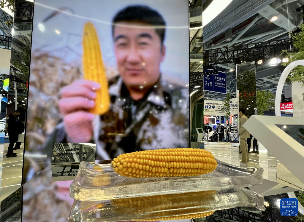 米其林公司展示的玉米(新华社记者周圆 摄)