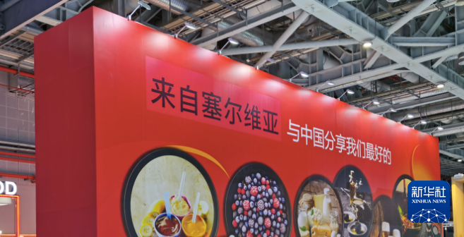 在1.1馆入口处,塞尔维亚工商会展台上“与中国分享我们最好的”几个大字格外引人注目。