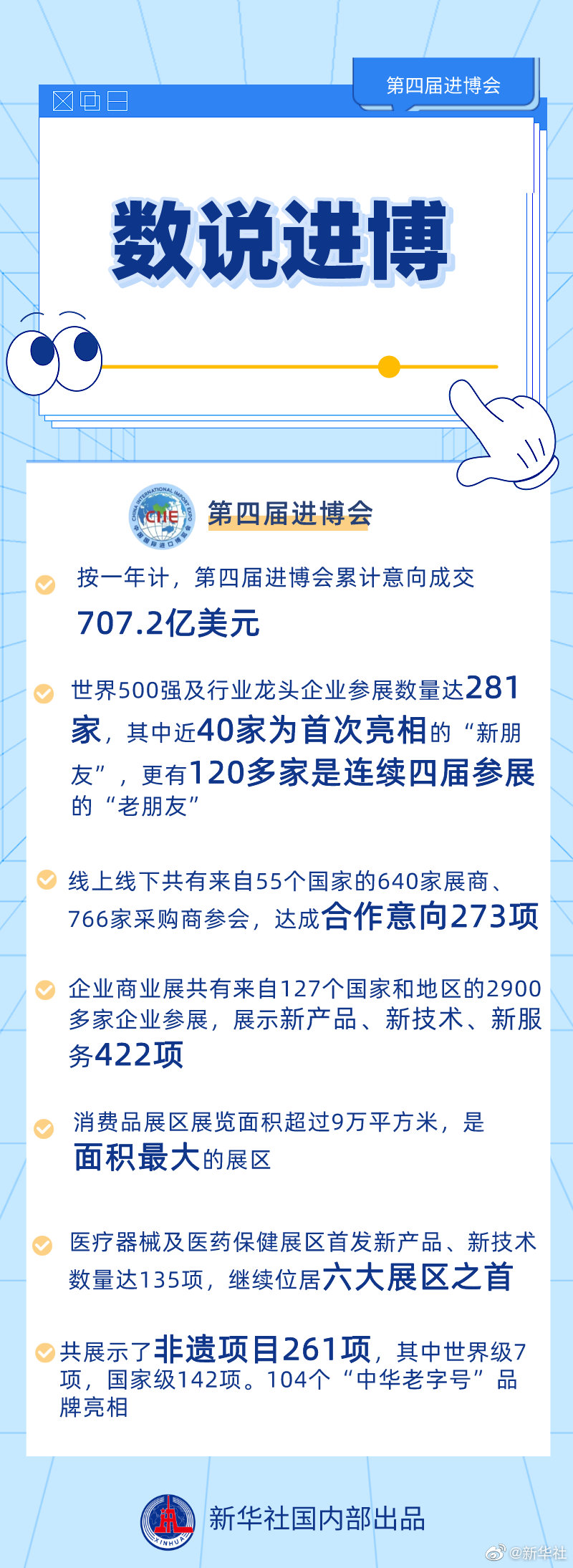 第四届进博会“朋友圈”进一步扩大,企业商业展共有来自127个国家和地区的2900多家企业参展,展览面积达到36.6万平方米,再创历史新高,展示新产品、新技术、新服务422项。其中,世界500强及行业龙头企业数量达281家,其中近40家为首次亮相的“新朋友”,更有120多家是连续四届参展的“老朋友”。
