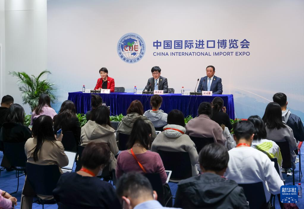 这是11月10日拍摄的第四届进博会闭幕新闻通气会现场。 新华社记者 王翔 摄