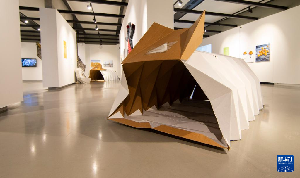 这是11月13日在加拿大多伦多举行的“生存建筑与应对的艺术”展览上拍摄的一件可折叠纸板庇护所。 一场名为“生存建筑与应对的艺术”的展览正在多伦多举行,展出一批融合科学、技术、建筑和艺术等元素以应对气候变化的建筑相关设计作品。 新华社发(邹峥摄)