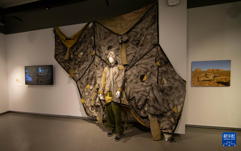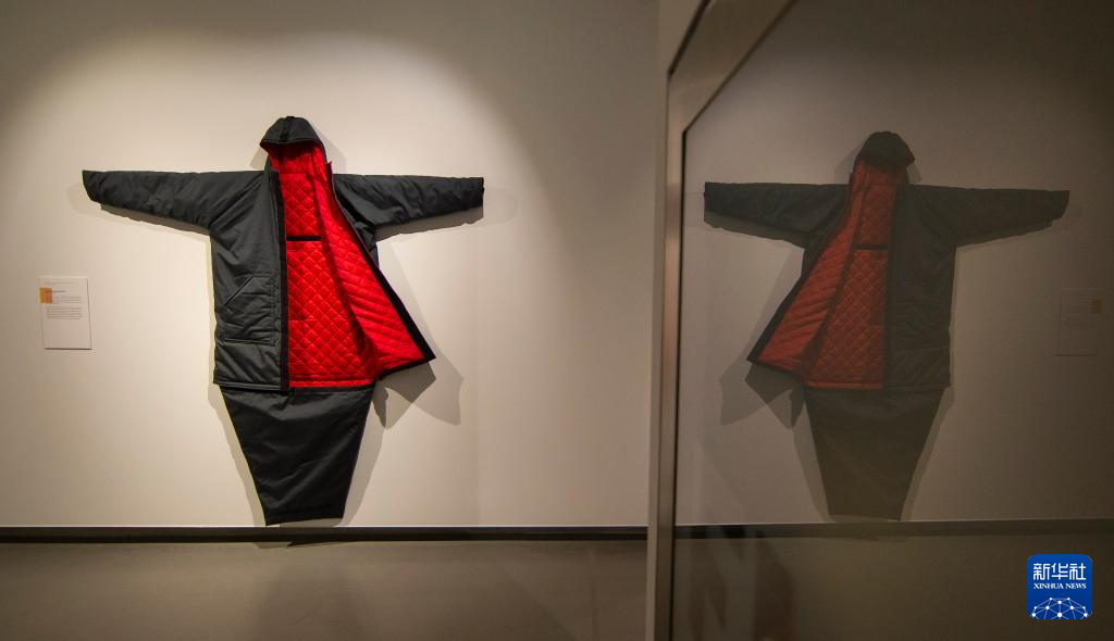 这是11月13日在加拿大多伦多举行的“生存建筑与应对的艺术”展览上拍摄的一件可变为睡袋的大衣。 新华社发(邹峥摄)