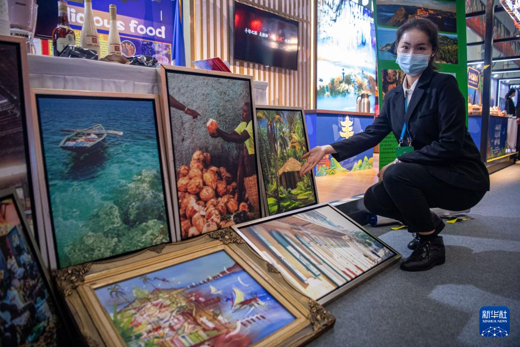 11月16日,工作人员在第十四届中国—拉美企业家高峰会合作展上展示拉美国家的特色展品。 当日,第十四届中国—拉美企业家高峰会在重庆以线上线下相结合方式举办。本届高峰会由中国贸促会、重庆市人民政府和中国人民银行共同主办,主题为“开放创新、携手共进”。 新华社记者 唐奕 摄