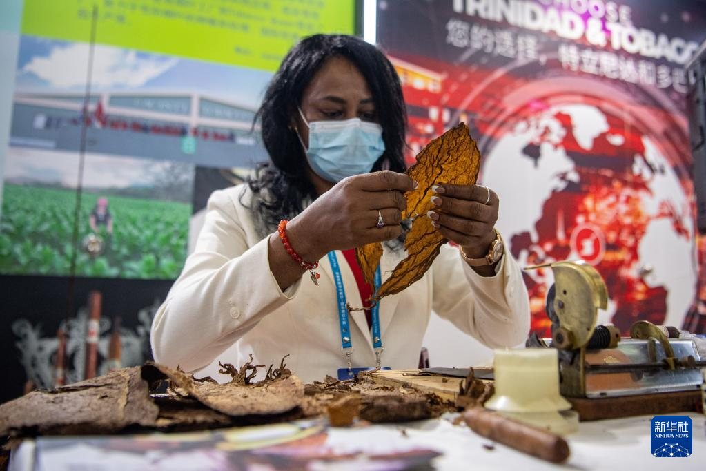 11月16日,在第十四届中国—拉美企业家高峰会合作展上,古巴卷烟师米达莉亚在现场进行卷烟表演。 新华社记者 唐奕 摄