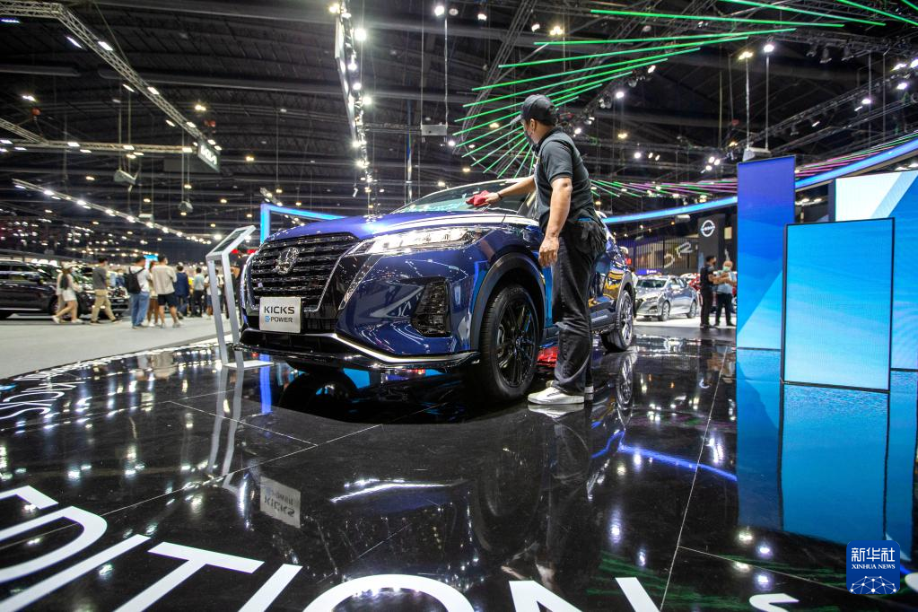 12月1日,工作人员在泰国曼谷举行的第38届泰国国际车展上清洁展车。 新华社记者 王腾 摄