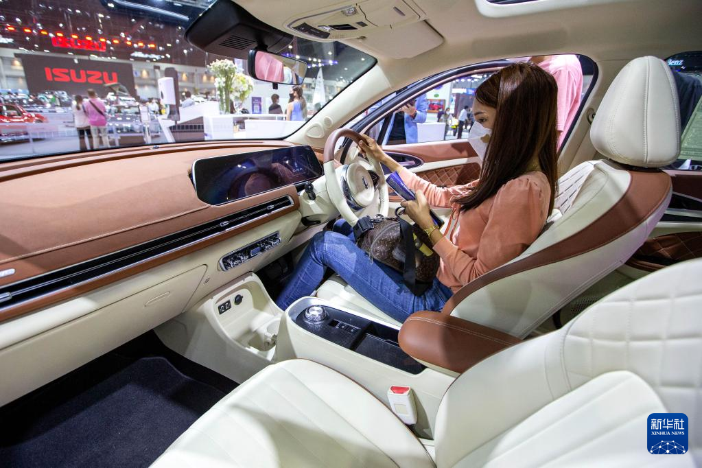 12月1日,观众在泰国曼谷举行的第38届泰国国际车展上参观。 当日,第38届泰国国际车展开幕。共有32家国际汽车品牌、12家摩托车品牌及众多零配件厂商参展,该展览将持续至12月12日。 新华社记者 王腾 摄