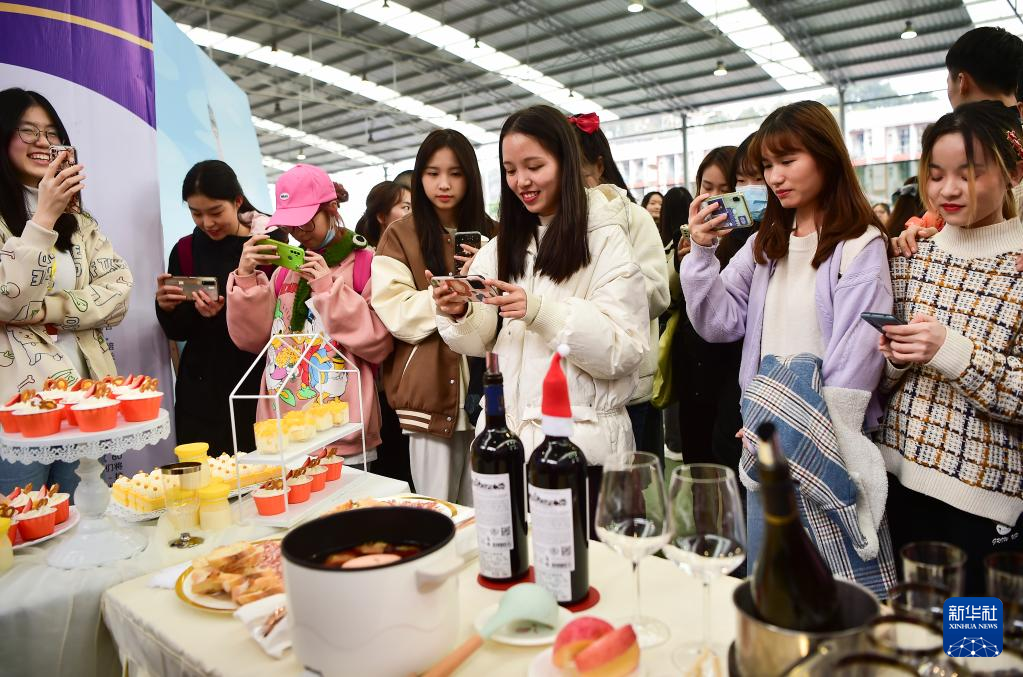 12月3日,学生在四川外国语大学2021国际文化节展览上参观体验。 新华社记者 王全超 摄