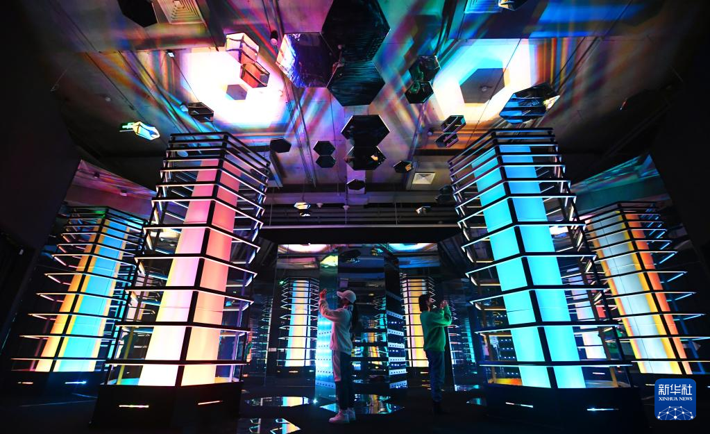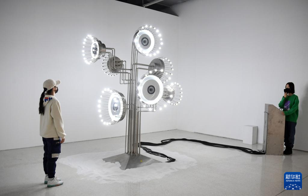 12月14日,在北京时代美术馆,观众参观“向光而行”新媒体艺术展。 新华社记者 任超 摄