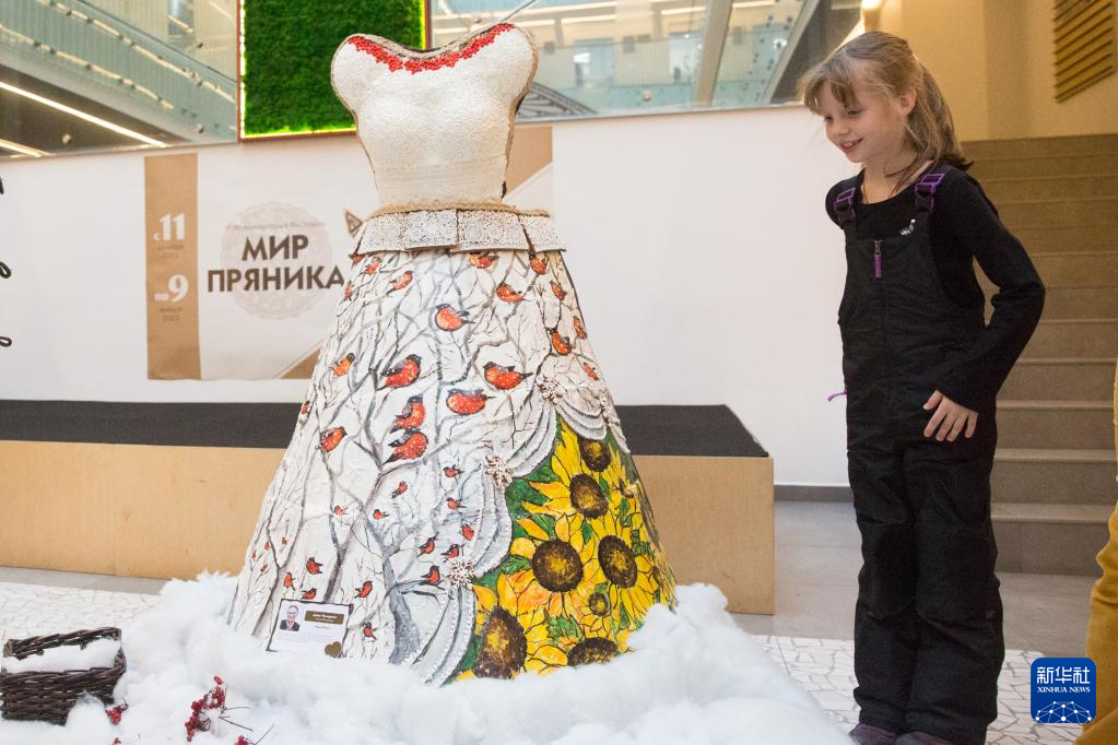12月18日,一名小朋友在俄罗斯圣彼得堡举办的姜饼节上参观。 新华社发(莫京娜 摄)