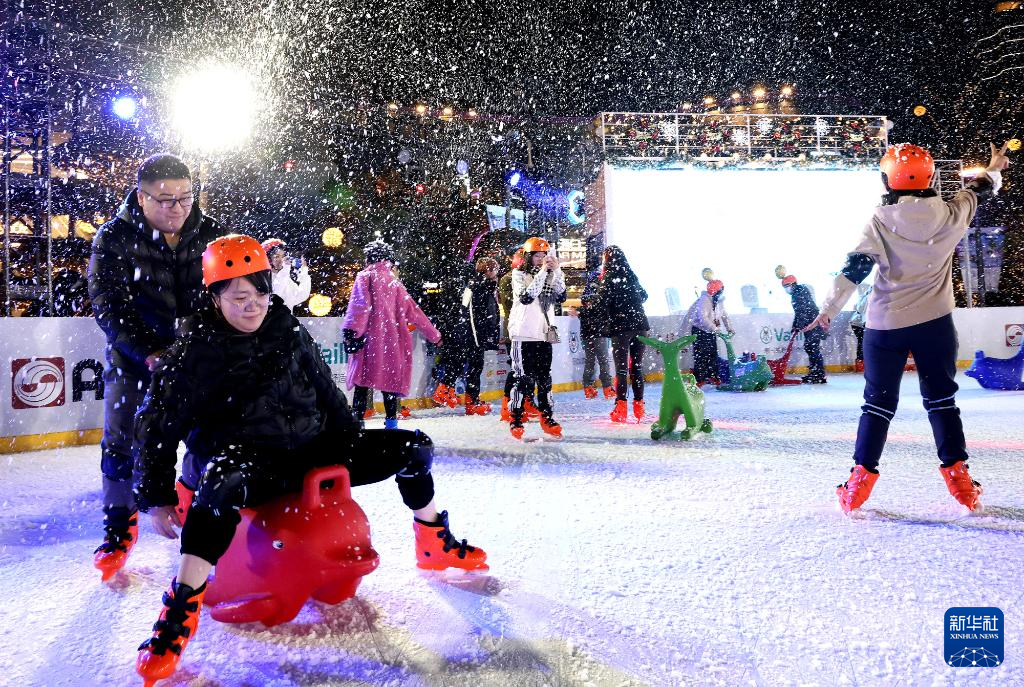 12月23日,冰雪运动爱好者在冰雪节上体验滑冰。 新华社记者 陈飞 摄