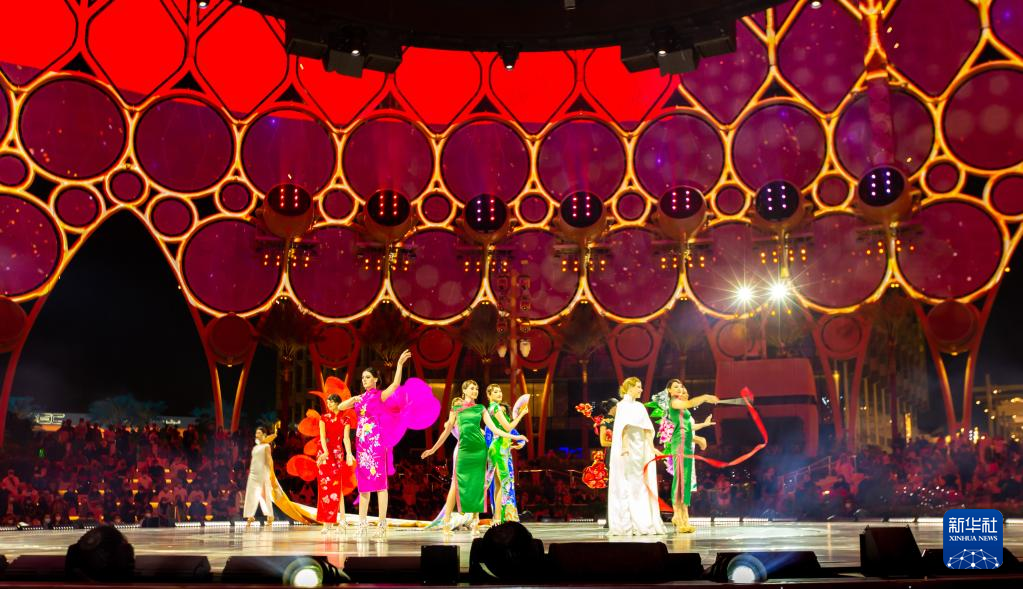 这是1月10日在阿联酋迪拜世博会拍摄的世博旗袍晚会现场。 新华社发