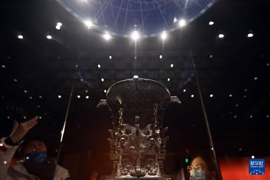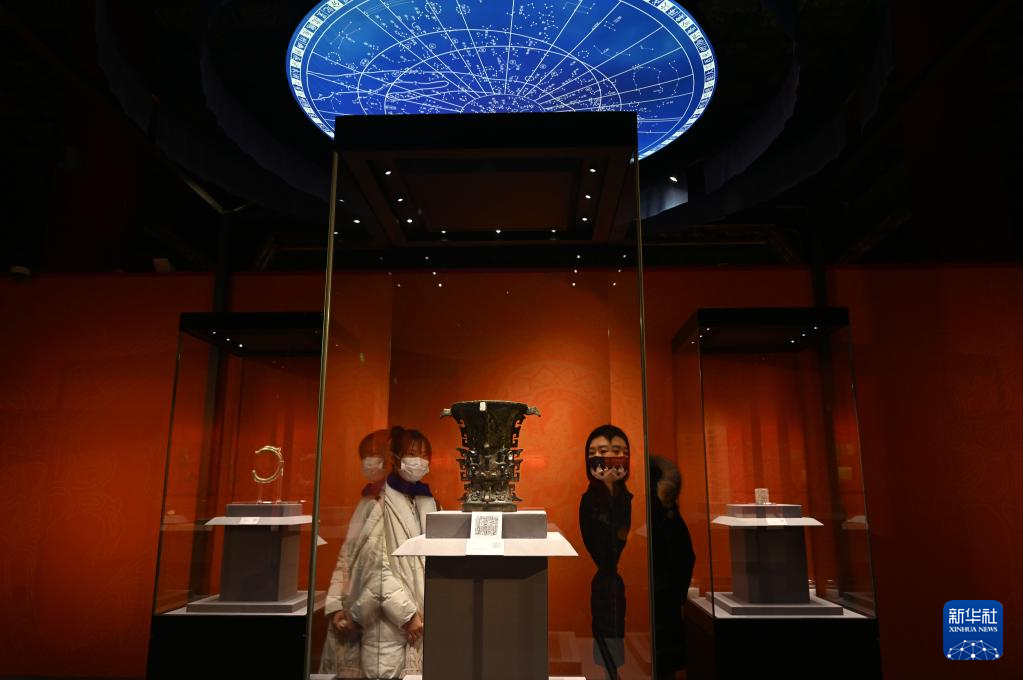 1月25日,观众欣赏展出的何尊(中)。 新华社记者 金良快 摄