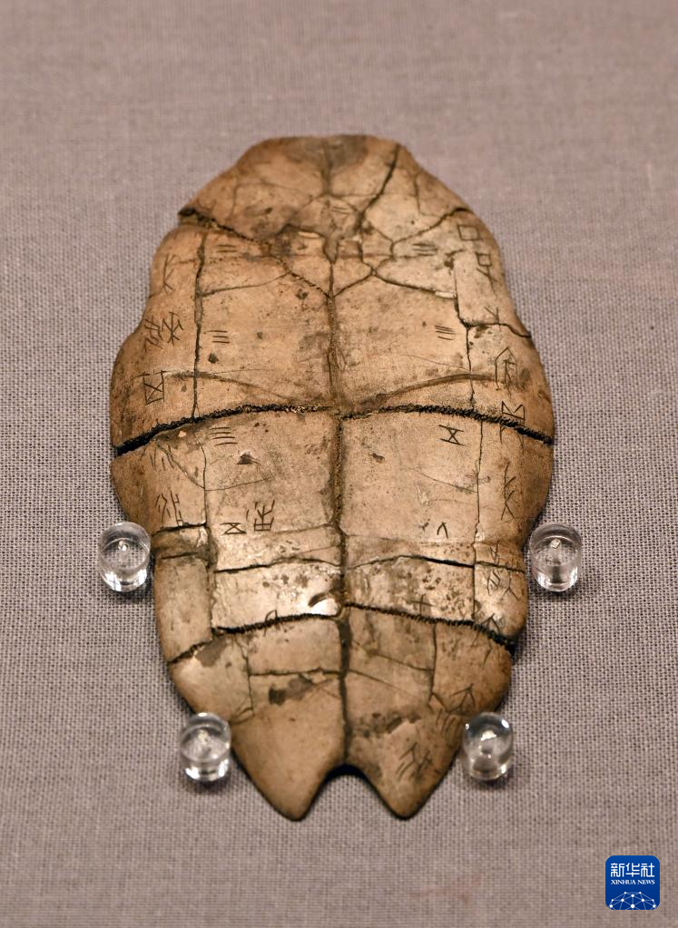 这是展出的刻辞龟甲(1月25日摄)。 新华社记者 金良快 摄