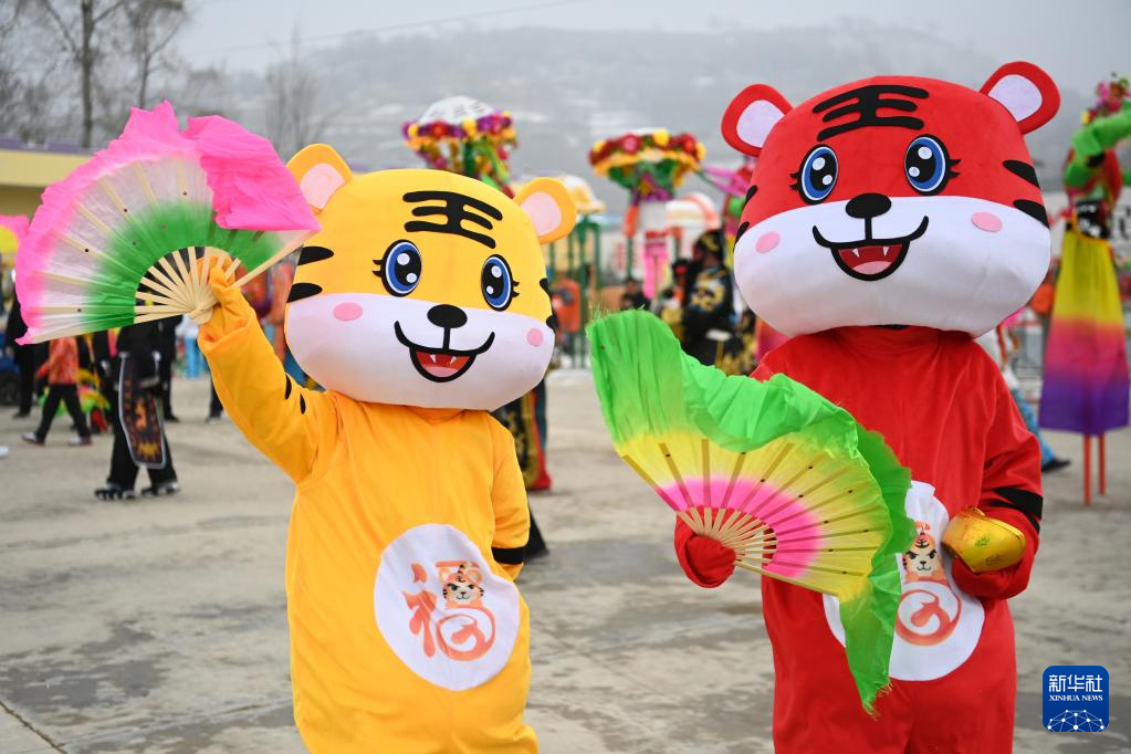 1月26日,在和政县陈家集镇陈家集村,村民表演扭秧歌。 虎年春节将至,甘肃省临夏回族自治州和政县陈家集镇陈家集村村民们扭起秧歌,迎接春节的到来。 新华社记者 范培珅 摄