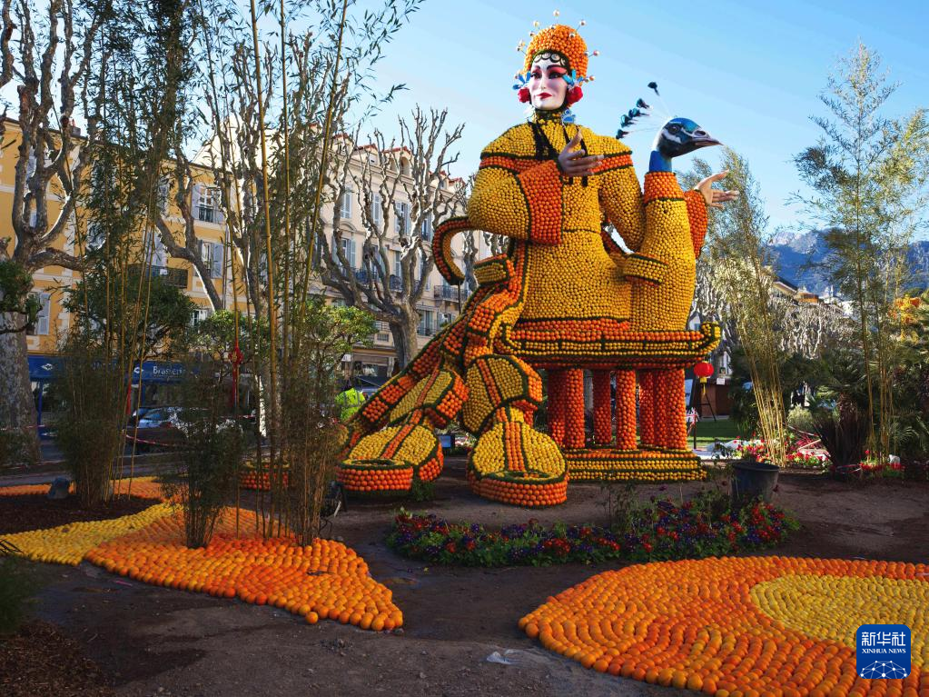这是2月9日在法国南部小城芒通拍摄的柠檬节艺术装置。 新华社发(塞尔日·阿乌齐摄)