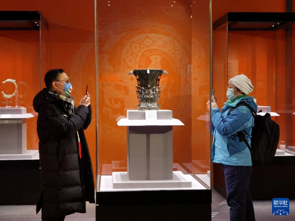 记者参观“何以中国——中华古代文明暨《国家宝藏》特展”。 新华社记者 叶挺 摄
