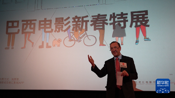 巴西驻华大使保罗·瓦莱在电影放映前讲话。 新华社记者 吴昊 摄