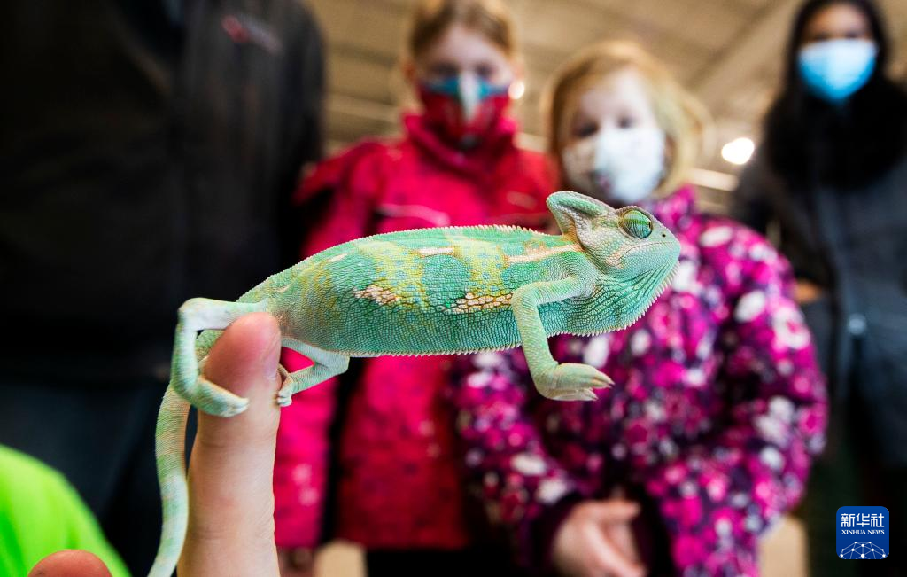 2月27日,在加拿大米西索加举办的爬行动物展上,人们观看一只变色龙。 新华社发(邹峥 摄)