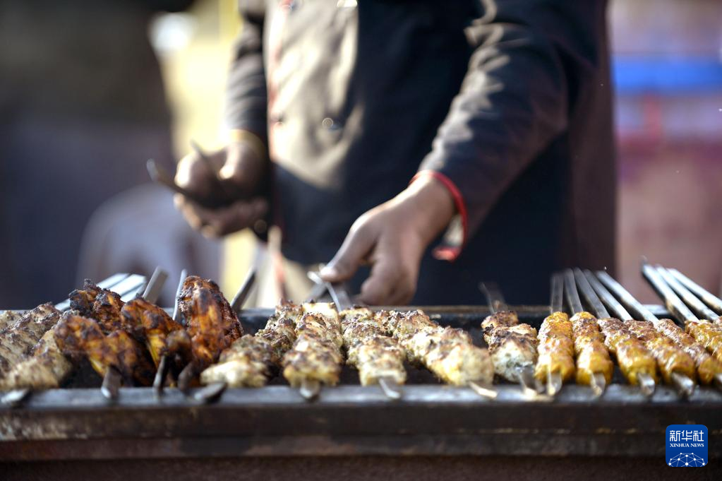 2月26日,在巴基斯坦伊斯兰堡举行的美食节上,一名厨师在烤肉。 新华社发(艾哈迈德·卡迈勒 摄)