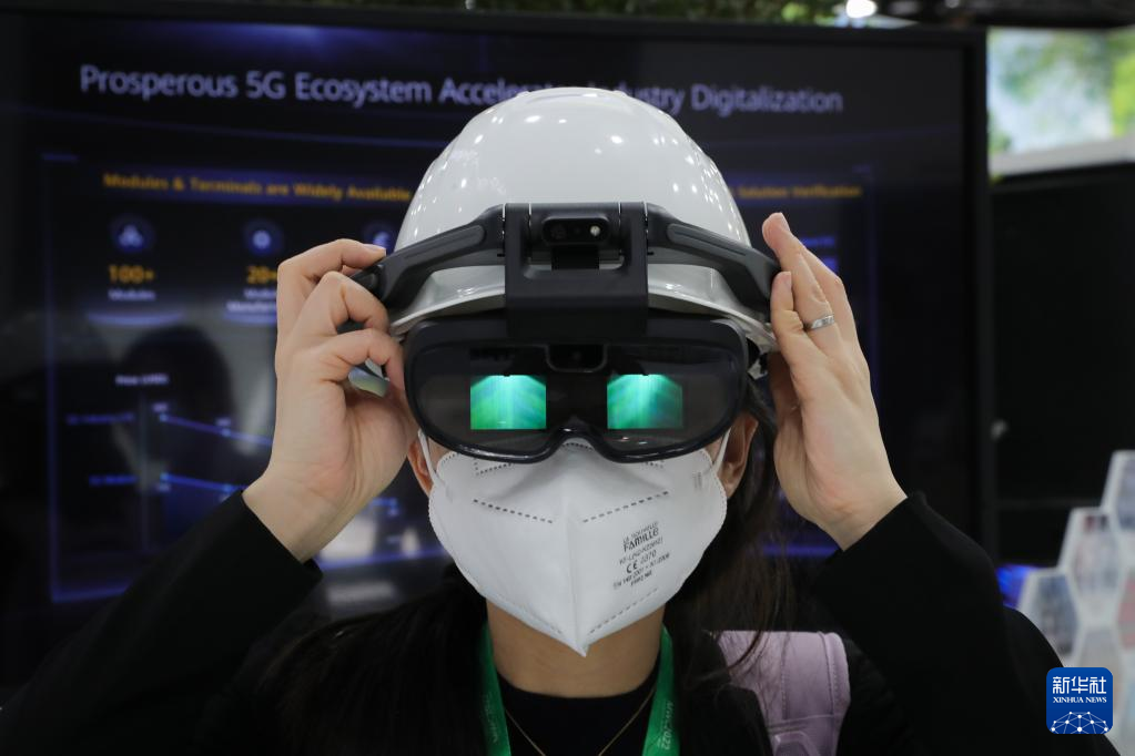3月1日,在西班牙巴塞罗那举行的2022世界移动通信大会上,参观者在华为展区体验5G工业头盔。 2022世界移动通信大会于2月28日在西班牙巴塞罗那会展中心拉开帷幕。众多中国企业携最新产品在大会亮相,被多家国际媒体在预热报道中称为“尤其值得期待”。 新华社记者 郑焕松 摄