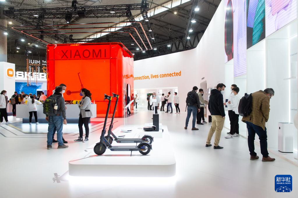 3月1日,人们在西班牙巴塞罗那举行的2022世界移动通信大会上参观小米展区。 新华社发(古斯塔沃·巴连特 摄)