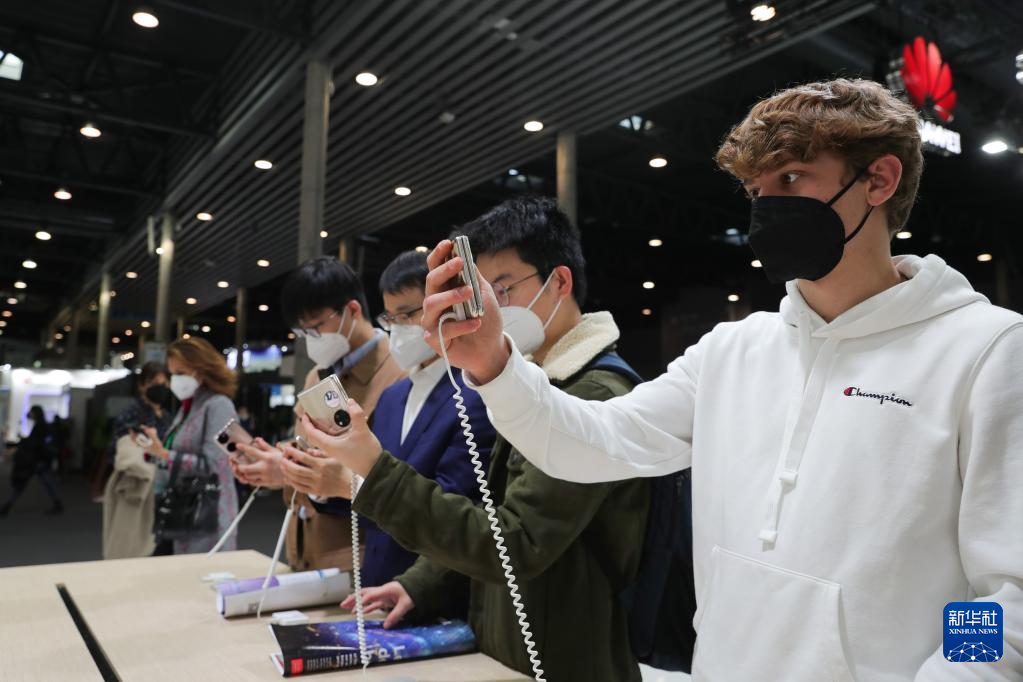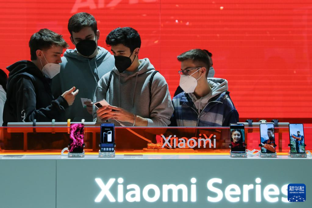3月1日,在西班牙巴塞罗那举行的2022世界移动通信大会上,人们在小米展区体验手机。 新华社记者 郑焕松 摄