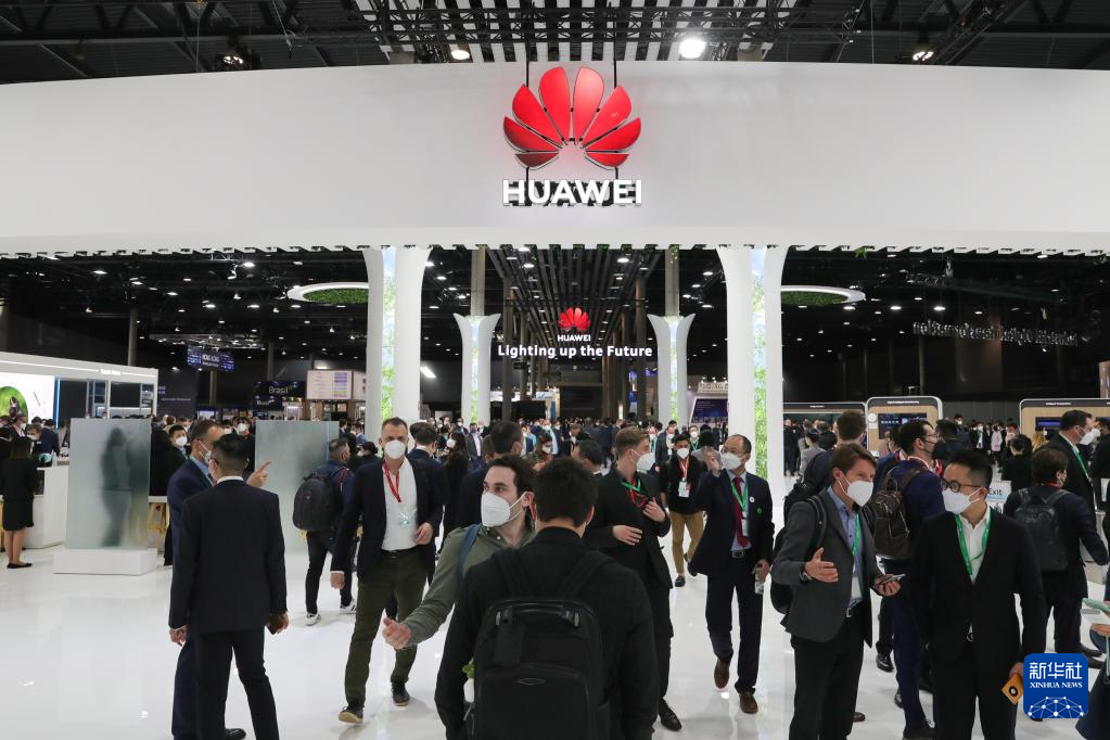 3月1日,人们在西班牙巴塞罗那举行的2022世界移动通信大会上参观华为展区。 新华社记者 郑焕松 摄