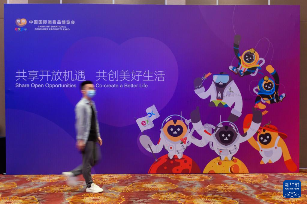 这是3月1日拍摄的第二届中国国际消费品博览会吉祥物IP新形象发布会现场。 新华社记者 胡智轩 摄