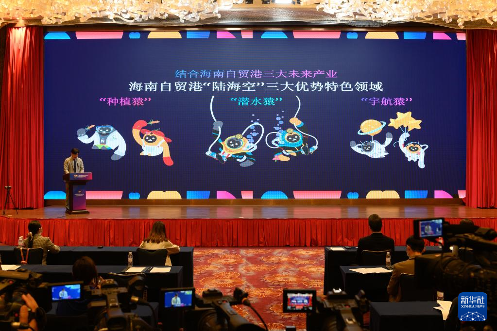 这是3月1日拍摄的第二届中国国际消费品博览会吉祥物IP新形象。 当日,第二届中国国际消费品博览会吉祥物IP新形象发布会在海口举办,结合种业、深海、航天三大产业的消博会吉祥物IP新形象——“种植猿”“潜水猿”“宇航猿”与公众见面。 新华社记者 胡智轩 摄