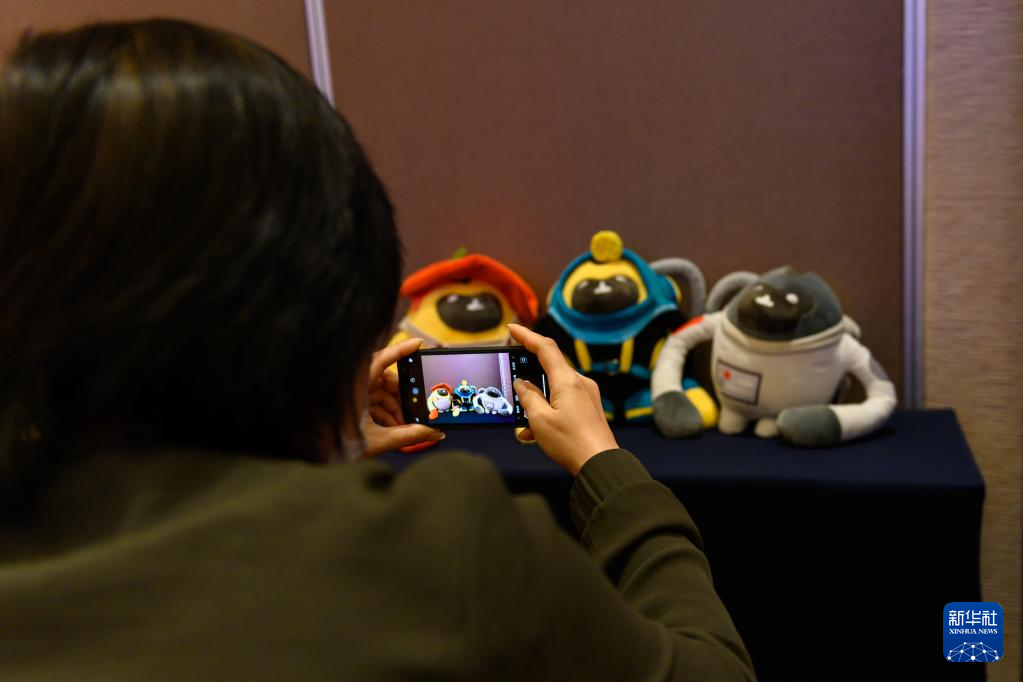 3月1日,观众拍摄第二届中国国际消费品博览会吉祥物IP新形象。 新华社记者 胡智轩 摄