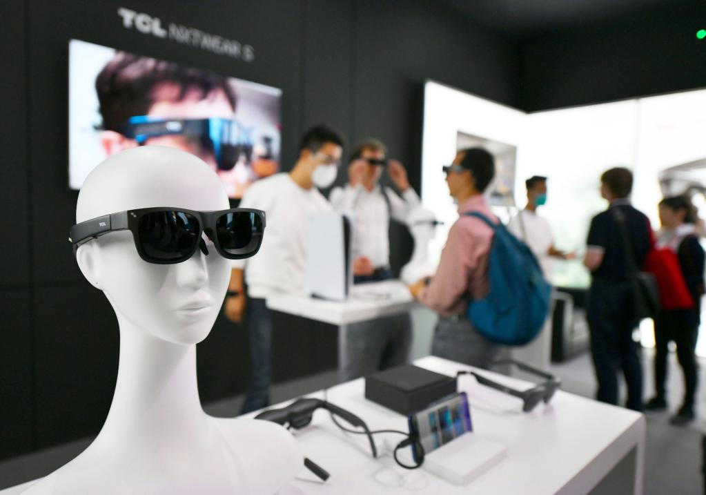 2022年9月2日,在德国柏林国际消费电子展上,参观者在TCL展区体验智能穿戴设备。(新华社记者任鹏飞摄)