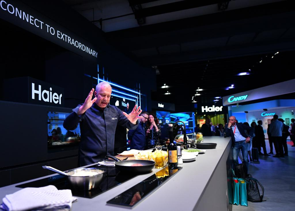 2022年9月2日,在德国柏林国际消费电子展海尔展区,工作人员演示一款烹饪设备。(新华社记者任鹏飞摄)
