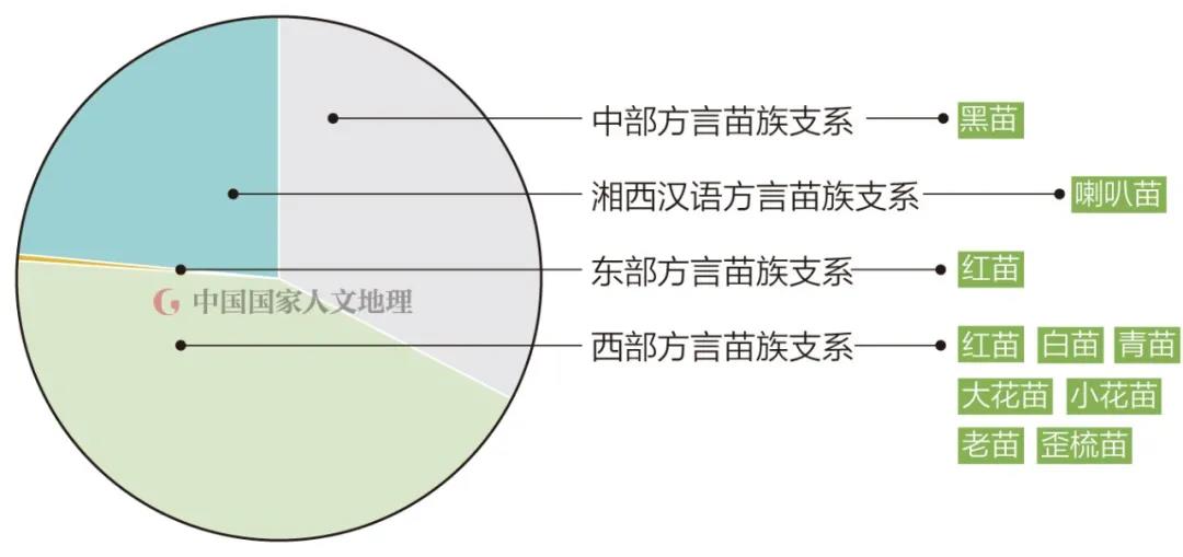 ▼ 黔西南州苗族方言支系分布比例图