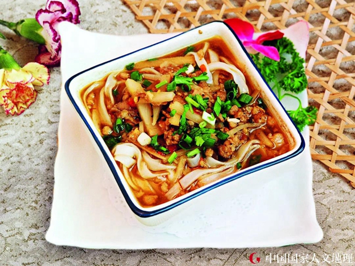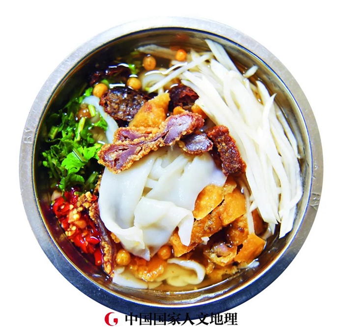 具有“酸、辣、咸、香”口感的老友粉是出自南宁本土的小吃。老友粉里的蒜末、豆豉、酸笋经过烹饪后,酸辣十足,还有驱寒祛湿、补中益气的功效。老友粉选用新鲜的猪肉、牛肉、猪杂等为主要配料,将它们码味后,起锅烧油,放入姜丝、蒜末、辣椒末、豆豉爆炒出香味,再放入肉类翻炒至变色后,加入高汤和新鲜河粉煮开。煮熟后撒上葱花,一碗带着镬气的浓郁咸香的老友粉就新鲜出炉了。