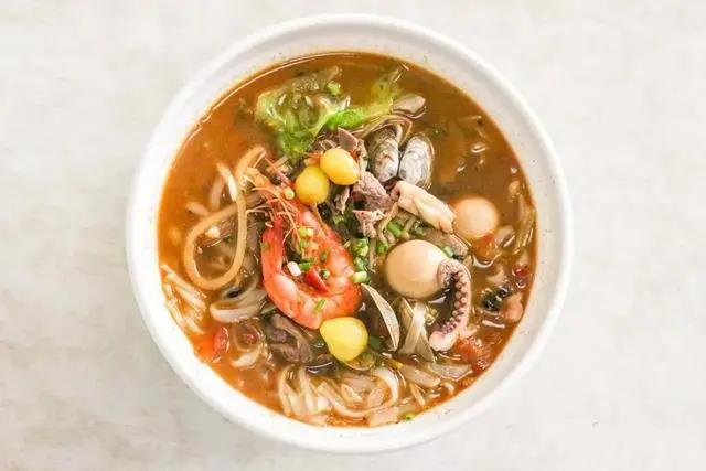 量大料足、用大海碗才能装得下的八珍粉,是米粉之都豪华级的米粉。米粉中的海虾、鲜鱿鱼、鱼角、鱼丸、冬菇、醉蛋、滑肉、蚝豉合称为八珍。其中的醉蛋是用鲍鱼汁、蟹肉汁、曲酒腌制两个小时以上的鹌鹑蛋,滑肉则是提前用生粉、盐、酱油调好味道的猪肉或者牛肉。八珍粉制作讲究,追求新鲜原味,吃起来鲜嫩爽滑。